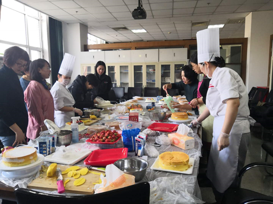 这次活动得到校工会和津乐园公司的大力支持,活动气氛非常热烈。津乐园技师当面表演蛋糕喷画和毛笔画蛋糕的制作方法,大家纷纷动手学习蛋糕裱花装饰艺术,开拓了视野、提升了技能、陶冶了情操。