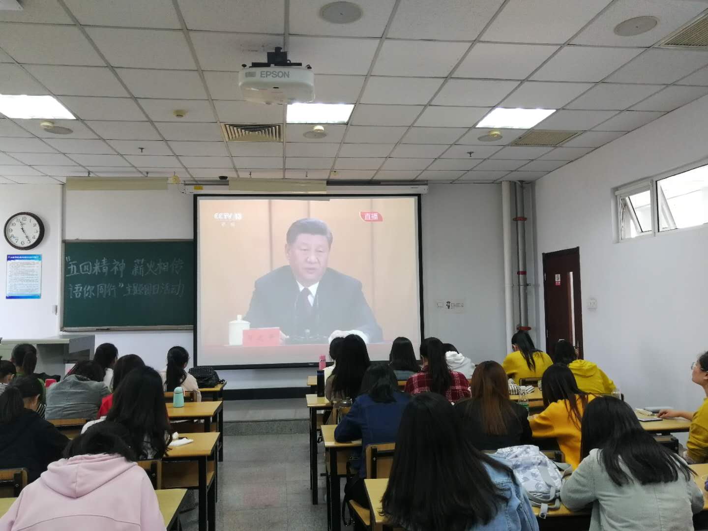 集体观看后,开展了五四精神、薪火相传、语你同行环节,在场的员工从弘扬五四精神出发,结合学习生活工作各方面,寄语青春。2018级研究生支部书记冯晨说,青年员工是国家和民族的未来和期望,因为青年肩负着国家的使命和历史的重任。一百年前,中国青年学子是五四爱国运动中最鲜活的血液,是思想引领者和革命运动的主导力量。一百年后的今天中国进入新时代,作为青年员工的我们更应该自觉担负起时代重任,立鸿鹄志、做奋斗者!英语1806班宣传委员焦辰说,百年前的五月四日,同样曾是青年的他们,走上街头,以青年之躯、青春之血扛起了大厦将倾的华夏民族,掀起了伟大的社会运动之澜。百年后的今天我辈青年站在先辈挽救的中华土地上,爱国主义、感恩之情薪火相传,我辈青年不可退缩,应向历史学习、向先辈学习,在属于我们这个历史时代,书写百年新青年的故事。
