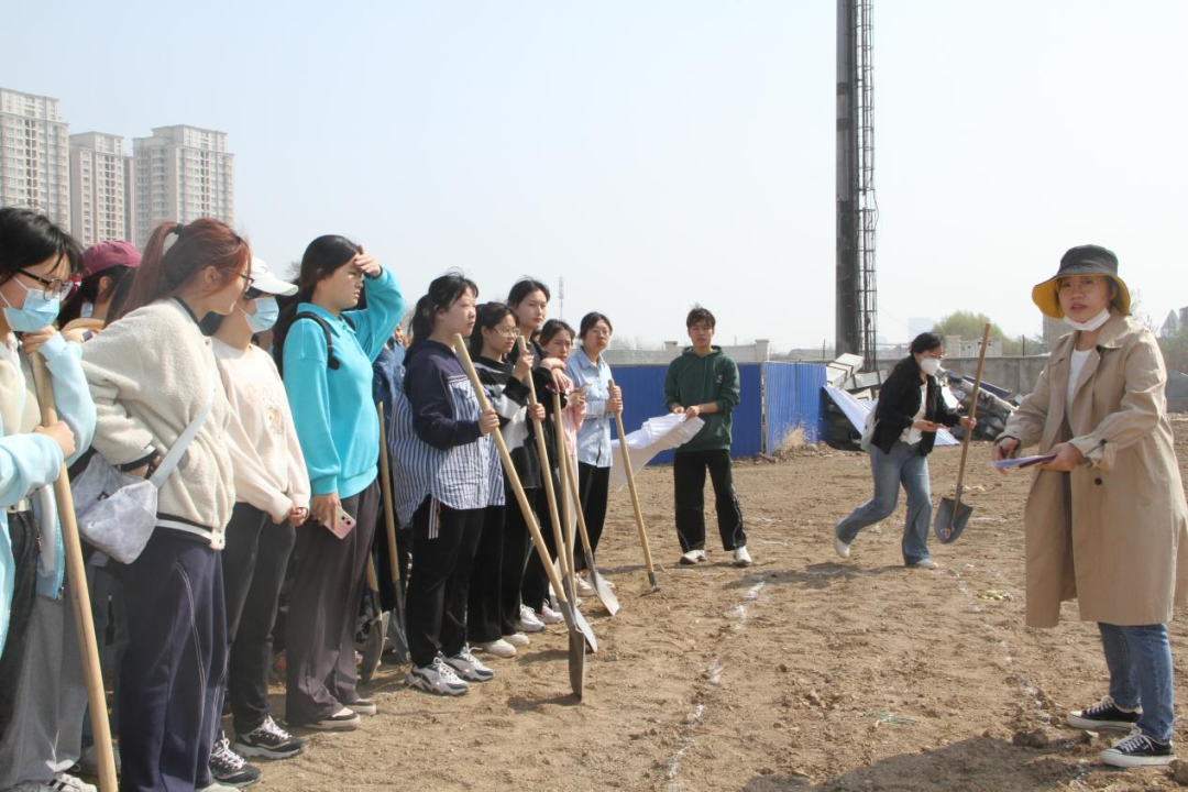 活动开始,武千茹为各进驻团队分配田地及当日任务。随后,后勤处王老师向员工们展示了整理垄沟的基本操作方法,手把手指导大家学习种地的要领。杨佳明和武千茹也对同学们进行耐心地指导,和同学们共同劳作,并鼓励大家大胆实践,体验种地的过程。