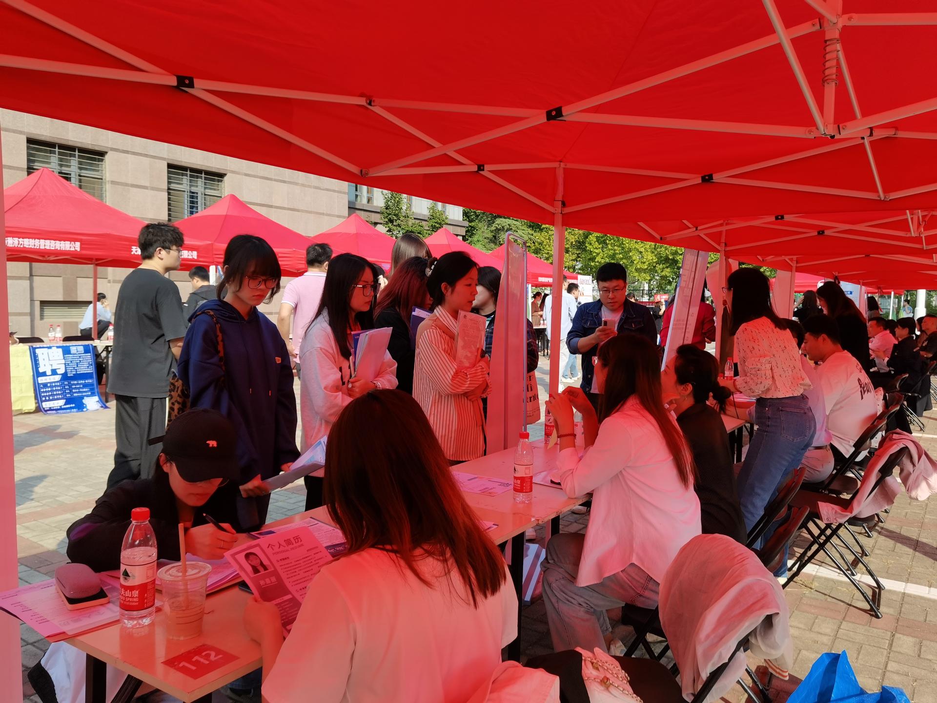 此次双选会邀请了外文培训公司(天津)有限公司、天津樱旭企业管理服务有限公司、鸿远国际贸易(天津)有限公司、联合威道(天津)市场调查服务有限公司、大宇宙信息创造(中国)有限公司、天津律云律师事务所等64家企业参会,提供岗位190余个,用人需求达570余人。