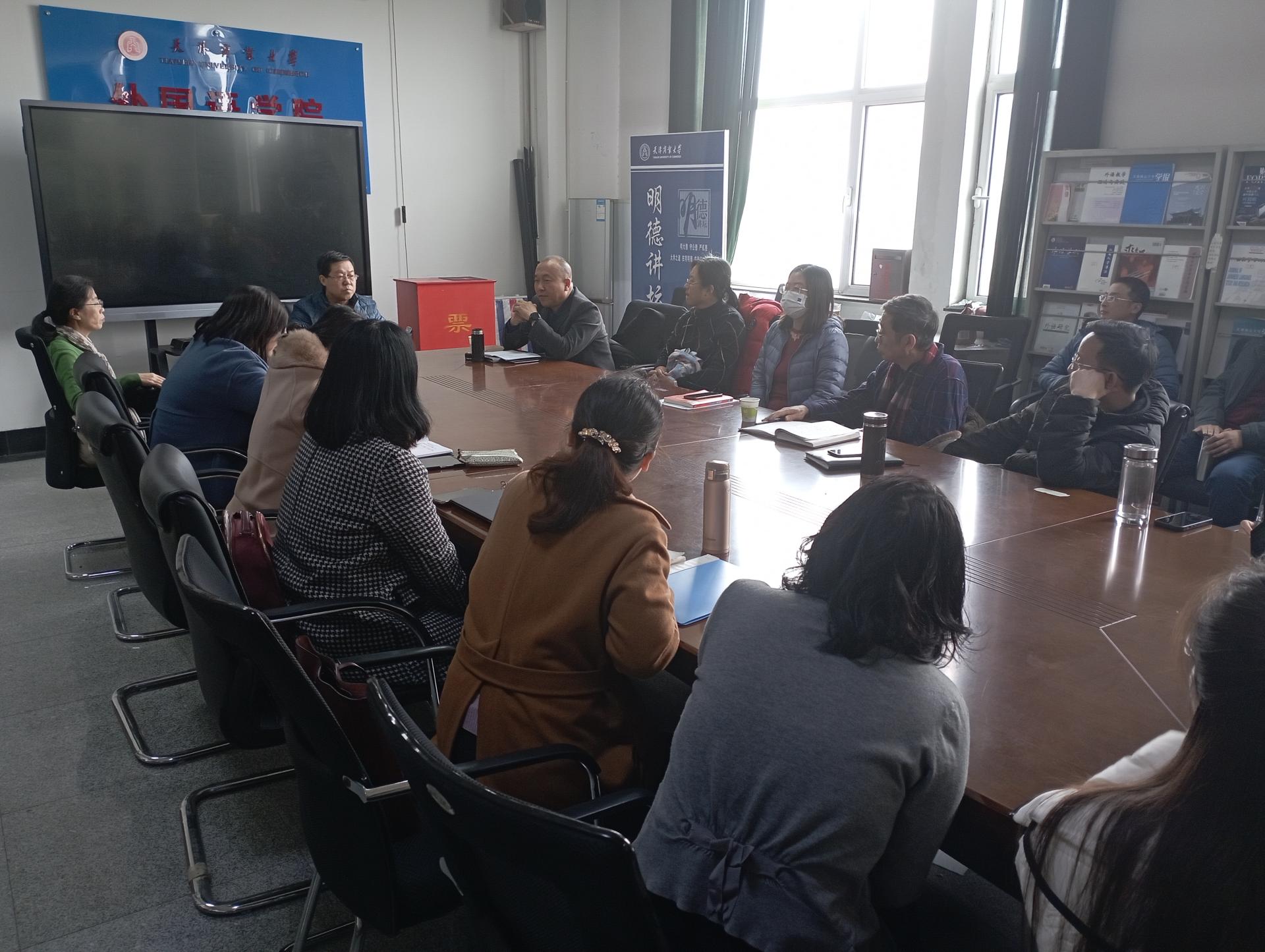 座谈会上,校级教学督导潮洛蒙教授介绍了督导工作情况,并就如何通过推进《理解当代中国》系列教材进课堂、如何加强对员工价值观的引导、如何通过集体备课等方式加强课程思政建设提出了切实可行的建议。三位院级督导也先后介绍了听课情况,并分别就加强新课程教研工作、高效组织员工互动环节、加快教材更新等内容进行了交流。