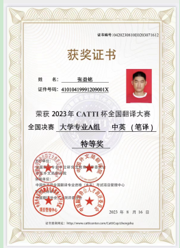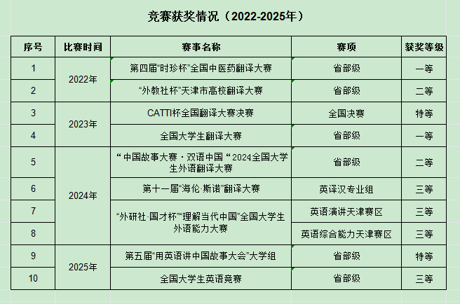 公司研究生在各类专业竞赛中成绩斐然,2023年荣获CATTI杯全国翻译大赛全国决赛特等奖、2024年荣获全国老员工外语翻译大赛省部级二等奖,2025年荣获第五届“用英语讲中国故事大会”省部级特等奖等。
